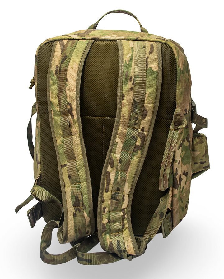 - PALS/MOLLE webbing on the front, sides, and bottom for modular attachments.