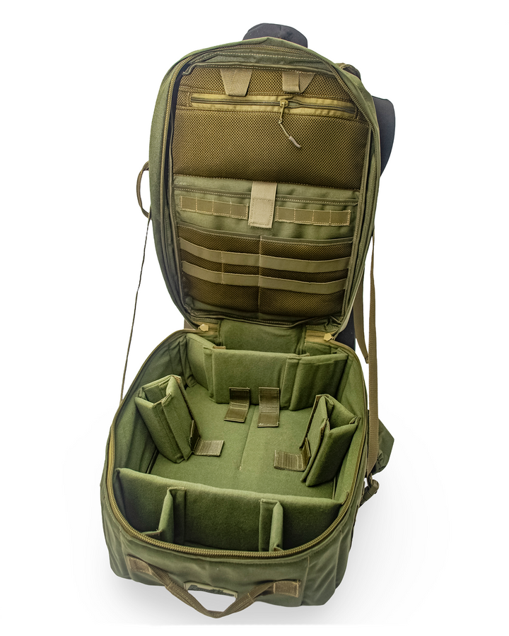 - 1000D nylon Cordura with IRR treatment; interior made of Velcro nylon and polyester; high-density webbing; YKK or equivalent zippers.
