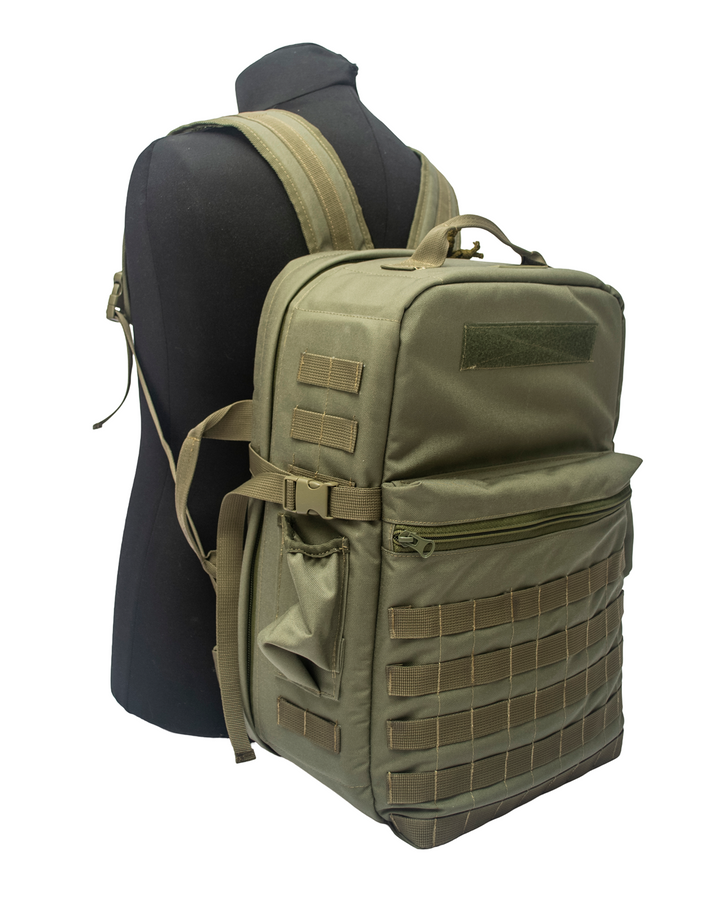 - PALS/MOLLE webbing on the front, sides, and bottom for modular attachments.