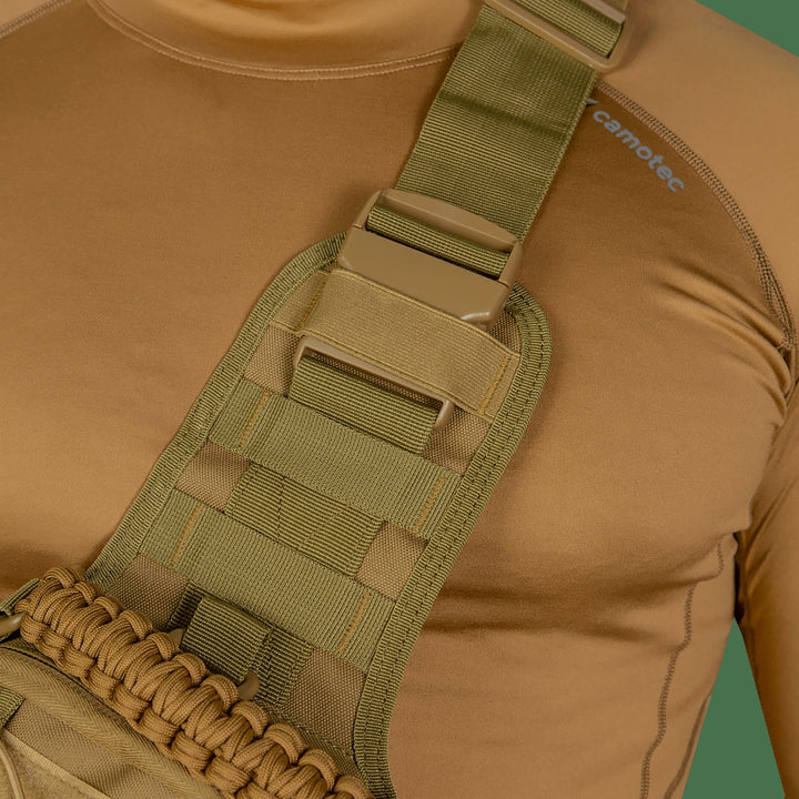 The Adapt Coyote Bag (7230) is a modern tactical single-shoulder bag designed for military personnel and active use. Manufactured by camotec, it combines durable materials, thoughtful ergonomics, and functional solutions, making it a reliable companion for service, work, or outdoor adventures.