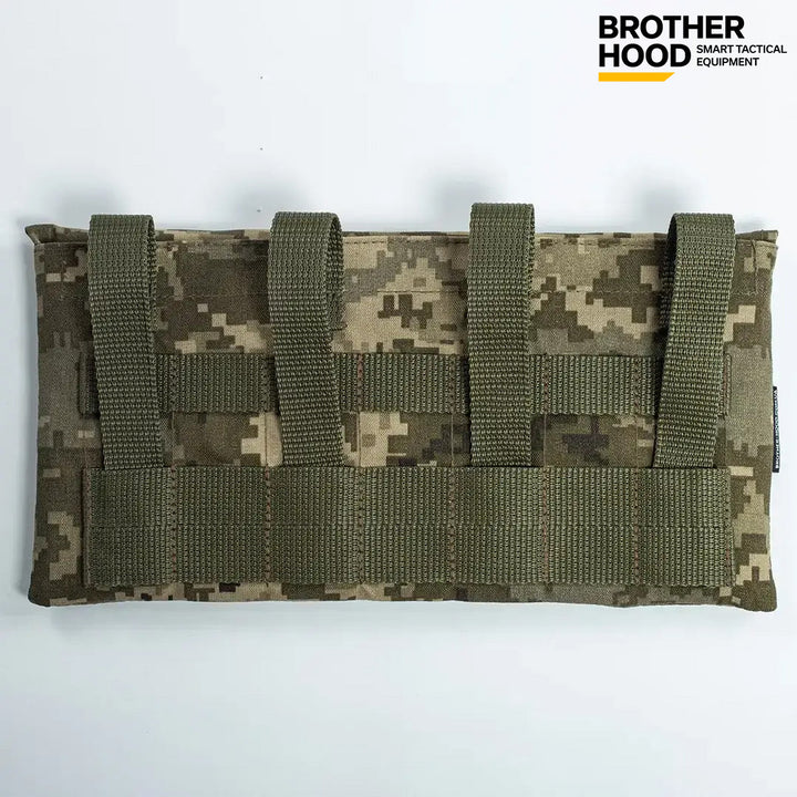 The Pixel 2.0 ballistic plate pocket is designed for secure external carry on vests or gear equipped with the MOLLE system, ensuring reliable protection and quick access to standard ballistic plates sized 6β x 12β.