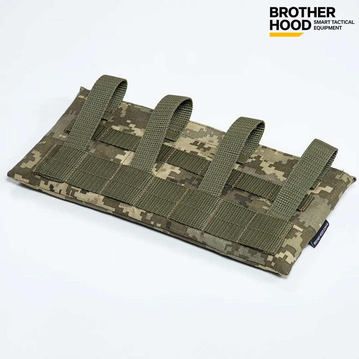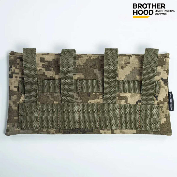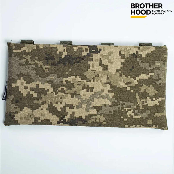 The Pixel 1.0 ballistic plate pocket by Brother Hood is a functional gear component designed for external attachment to vests or chest rigs. With a size that fits standard ballistic plates of 6” x 12”, it offers versatility for various carrying systems in field conditions.