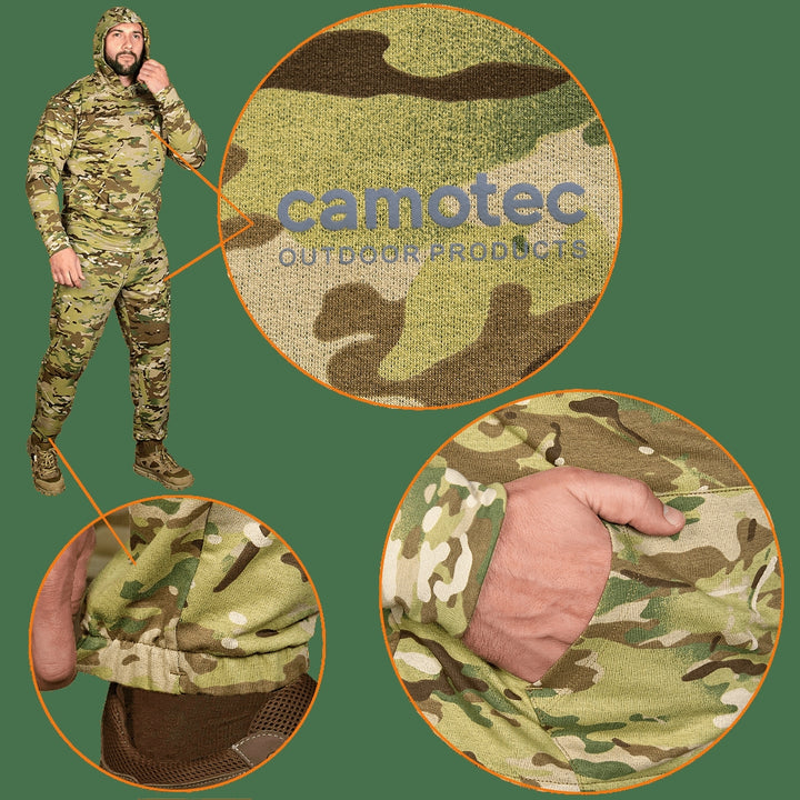 The Basic Hood 3.0 Multicam Tracksuit (7981) from Camotec is a versatile choice for outdoor activities, everyday wear, and military use during relocations. This suit combines thoughtful design, functional details, and premium fabric, making it an ideal option for the spring and summer months.