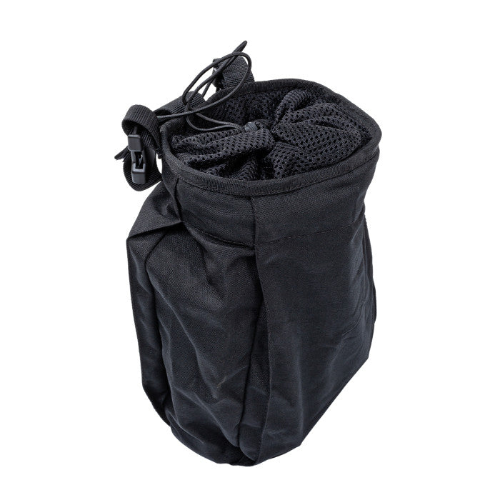 The Black Magazine Dump Pouch is an essential tool for combat situations, designed to facilitate the quick disposal of magazines during active operations. Its durable construction ensures that it maintains an open shape for easy access and use.