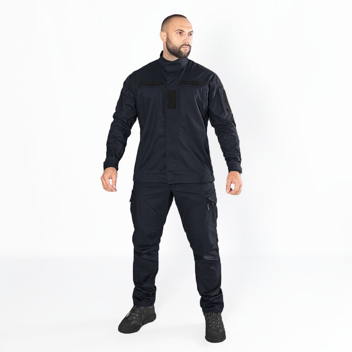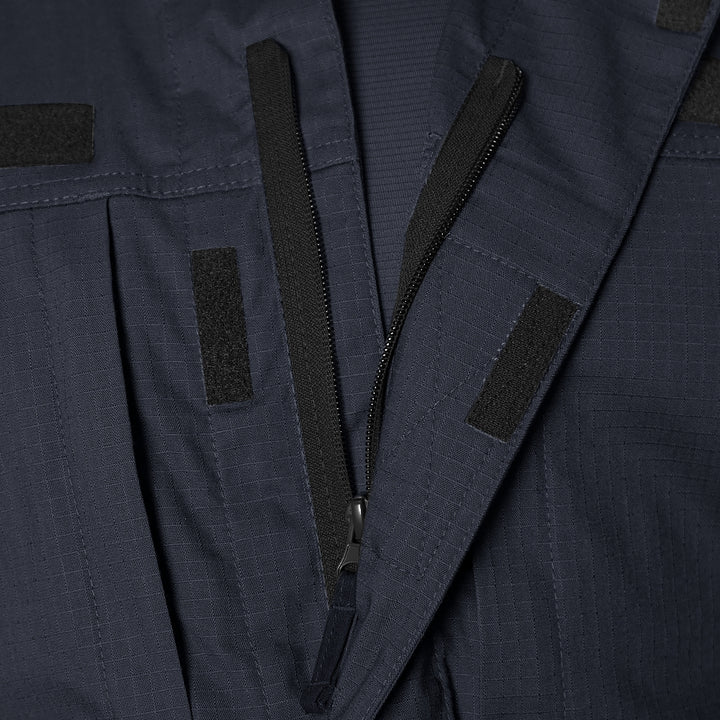 The Blitz Rip-Stop Stretch Tactical Jacket in dark blue (model 9003) from camotec is the perfect choice for military personnel, law enforcement, and paramilitary units who value reliability, comfort, and functionality. Made from a reinforced Rip-Stop Stretch fabric, this jacket is designed to withstand tough conditions while providing ease of movement.