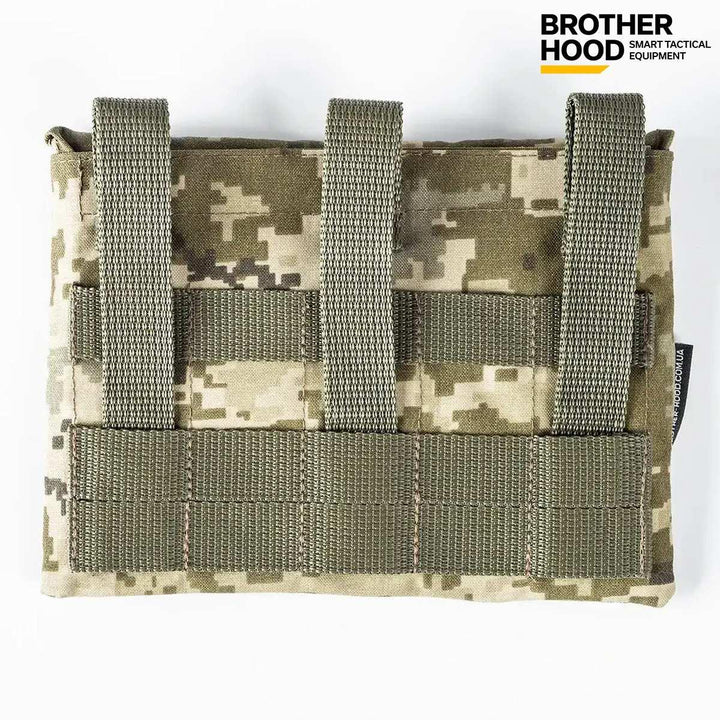 The Brotherhood Pixel 2.0 ballistic plate pocket (15x20 cm) is designed for secure external carrying of standard ballistic plates. This pouch is optimized for field use, ensuring quick access and resistance to external factors.