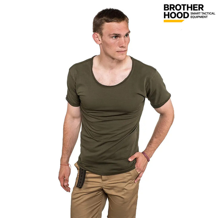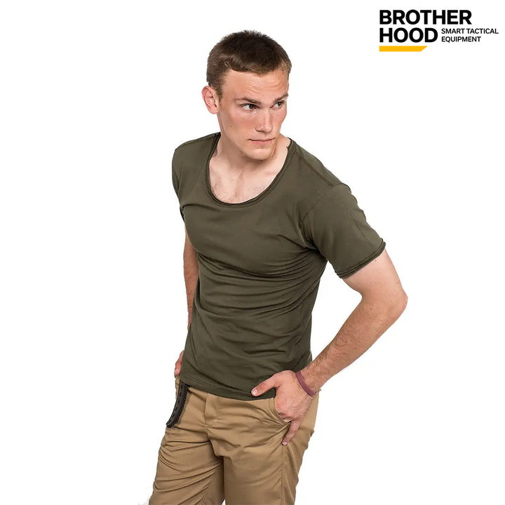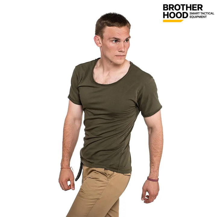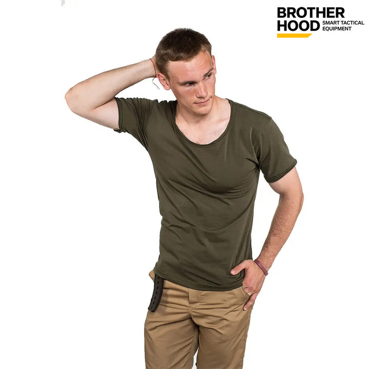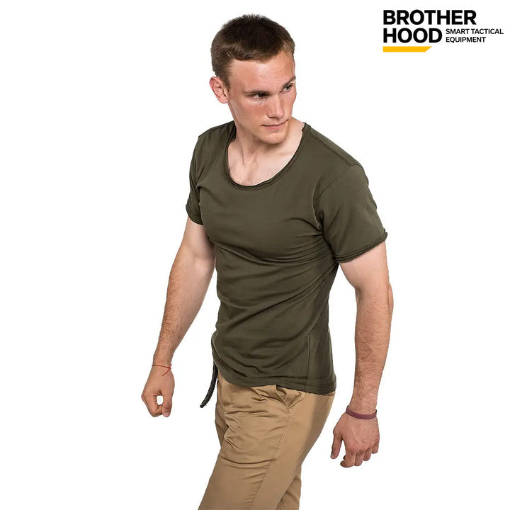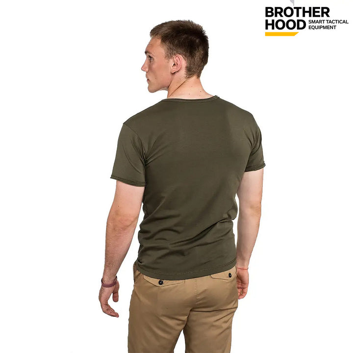 The Brotherhood Freedom T-shirt in khaki olive is designed for those who appreciate comfort, versatility, and a minimalist look. This men's model combines thoughtful design with practicality, making it an ideal choice for both everyday wear and outdoor activities.