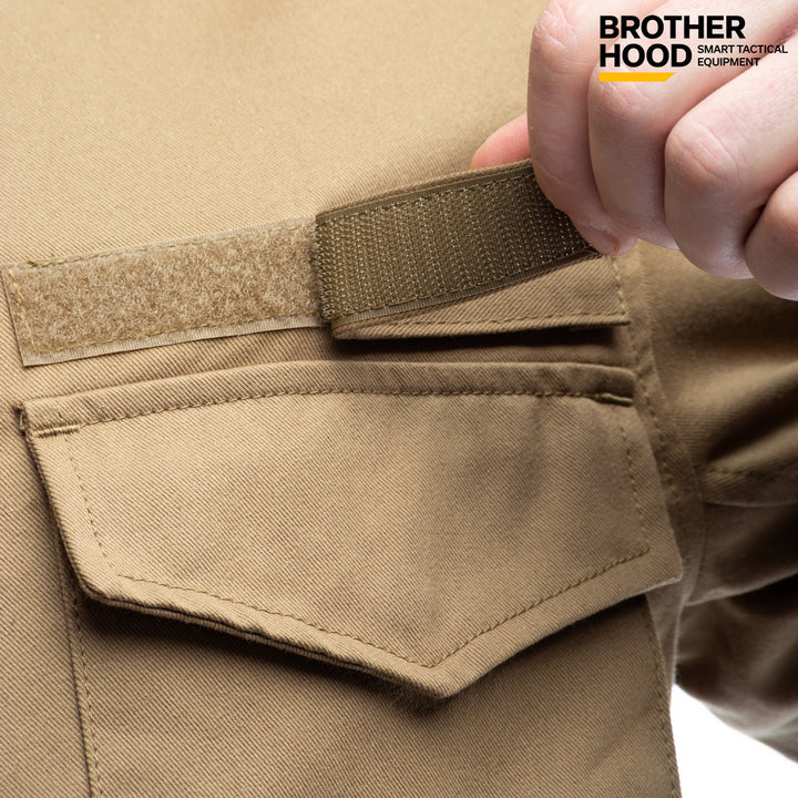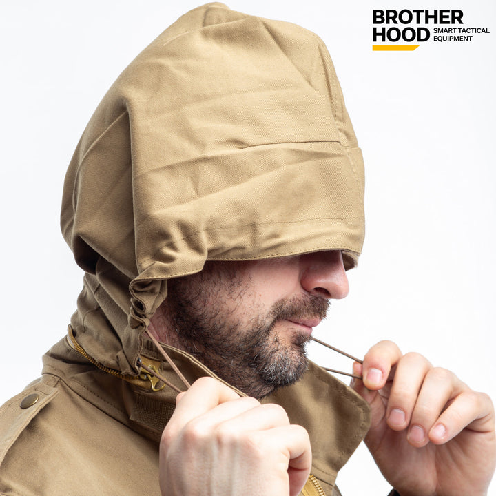 The Brotherhood M65 Tactical Jacket in Coyote is a versatile, three-season jacket designed for men who appreciate practicality, durability, and a classic military style. This updated version of the iconic 1965 parka features a water-repellent coating and is perfect for everyday wear, service, or outdoor activities.