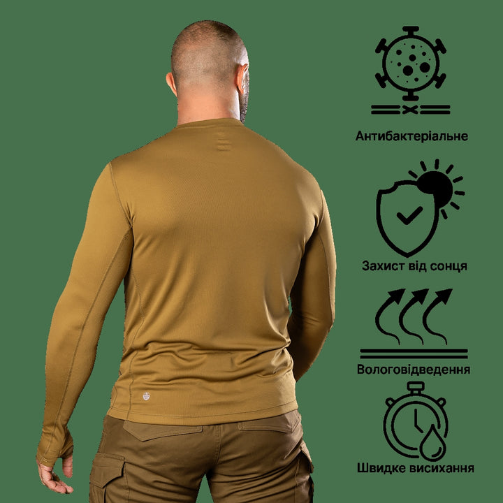 The Chiton 2.0 CoolPass Antistatic Long Sleeve in Coyote (7103) by camotec is a high-performance base layer designed for any activity. Made from innovative CoolPass Antistatic fabric, it offers excellent moisture-wicking and antistatic properties, ensuring comfort in the field, during workouts, and for everyday wear.