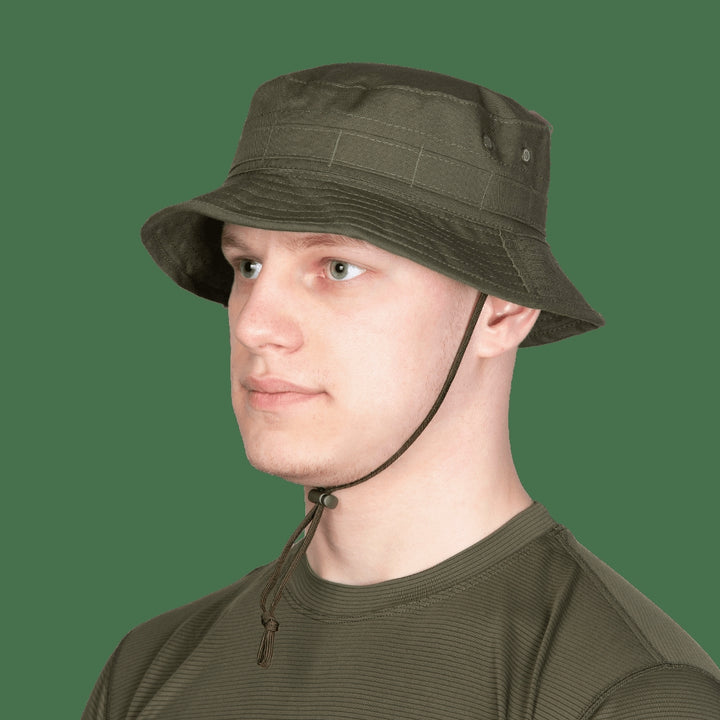 The CM Boonie 2.0 Hat in Olive (6685) by Camotec is designed for field conditions, combining a thoughtful military design with everyday comfort. This versatile hat features MOLLE attachment elements for additional gear and accessories.