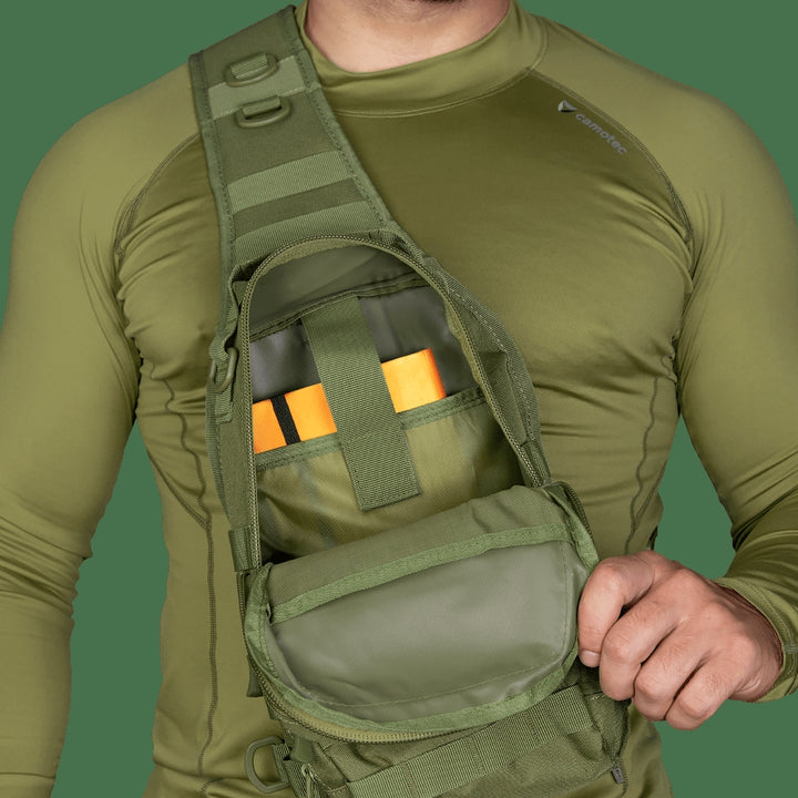 The COB Sling Olive Bag (7118) is a compact and versatile tactical bag designed for urban environments. Ideal for everyday use, security personnel, outdoor enthusiasts, and activities like camping, hunting, or fishing, this bag offers multiple carry options for maximum convenience.