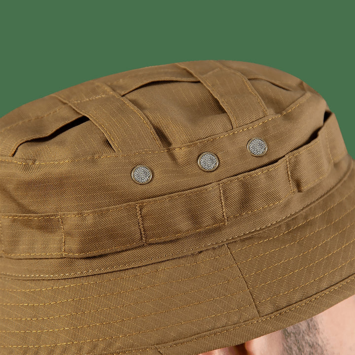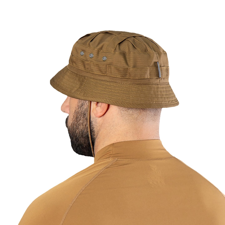This Combat Twill Coyote Bucket Hat combines practicality with thoughtful ergonomic design, making it ideal for military gear and outdoor recreation. Get this model for a comfortable and durable headwear option for the warm season.