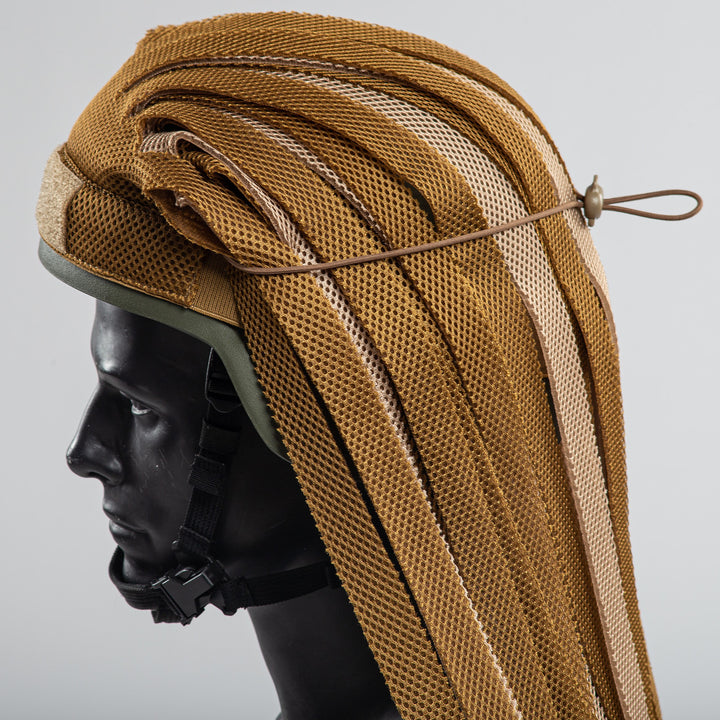 The Coyote + Light Coyote Camouflage Hood or Helmet Cover is designed for quick concealment in the field. This versatile cover effectively reduces visibility by shielding the head, face, shoulders, and part of the back, making it an essential accessory for military personnel, hunters, and outdoor enthusiasts.