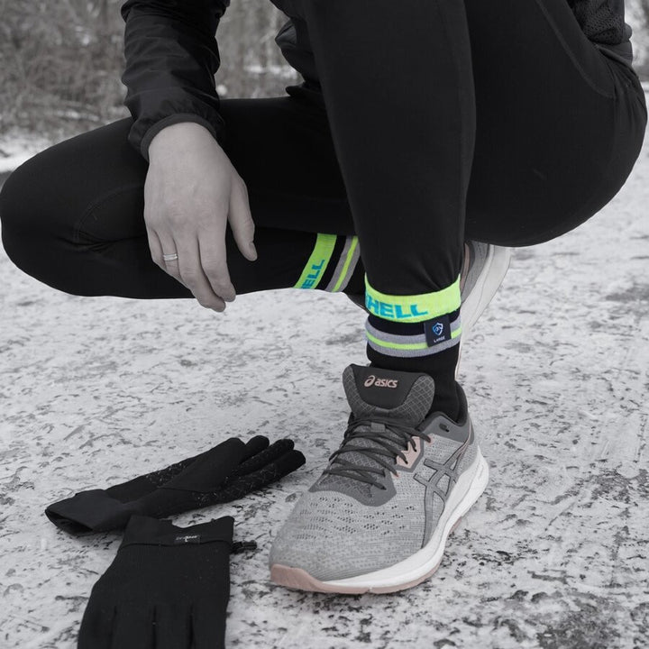Stay dry and visible with the DexShell Pro Visibility Cycling Socks (DS648HVY), designed for outdoor enthusiasts and cyclists. These socks feature a bright design and a unique three-layer construction that ensures complete waterproofing and durability.