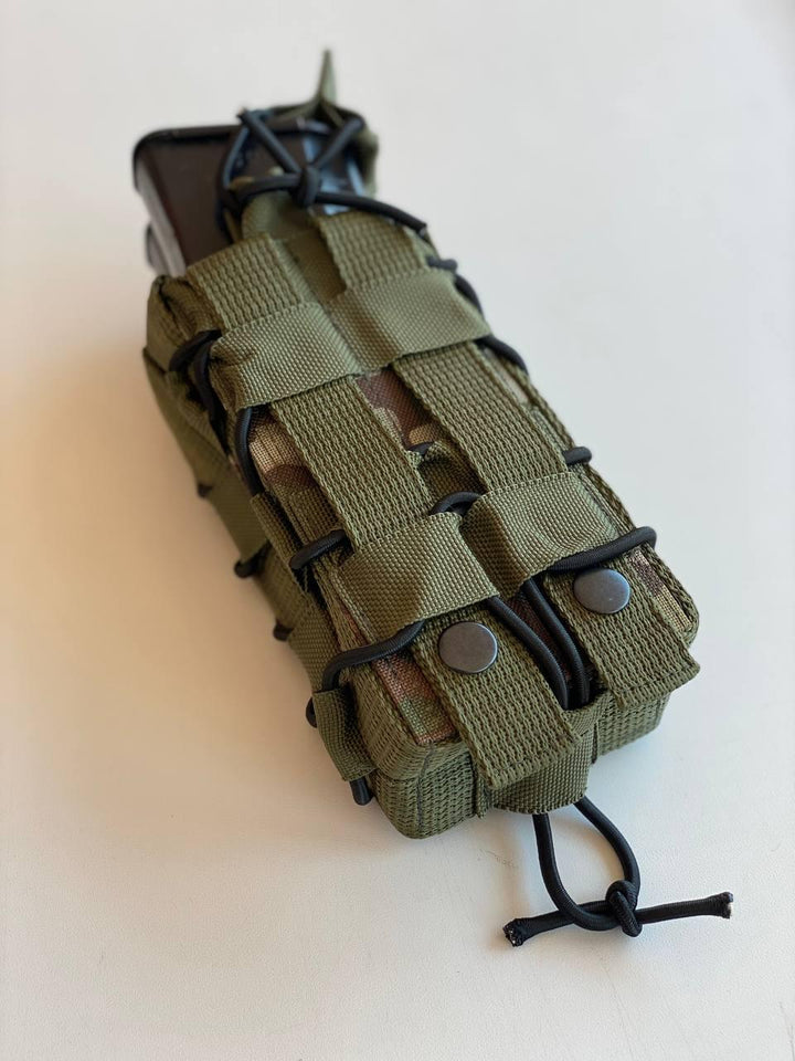 - Elastic cord for secure retention, allowing easy insertion and tight fit of magazines.
