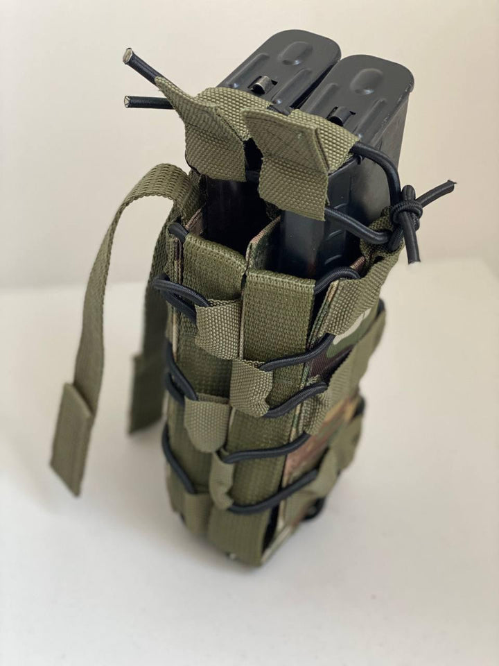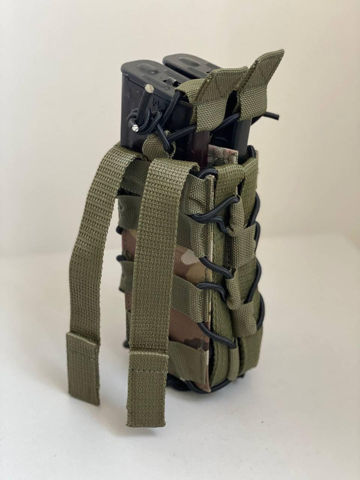 This double assault pouch is ideal for military personnel, law enforcement, and tactical gear enthusiasts, allowing for the storage of two AK magazines in a compact unit with easy one-handed access, crucial for rapid reloading. With its rigid components and thoughtful retention system, the pouch maintains stability even during active movement or extreme conditions.
