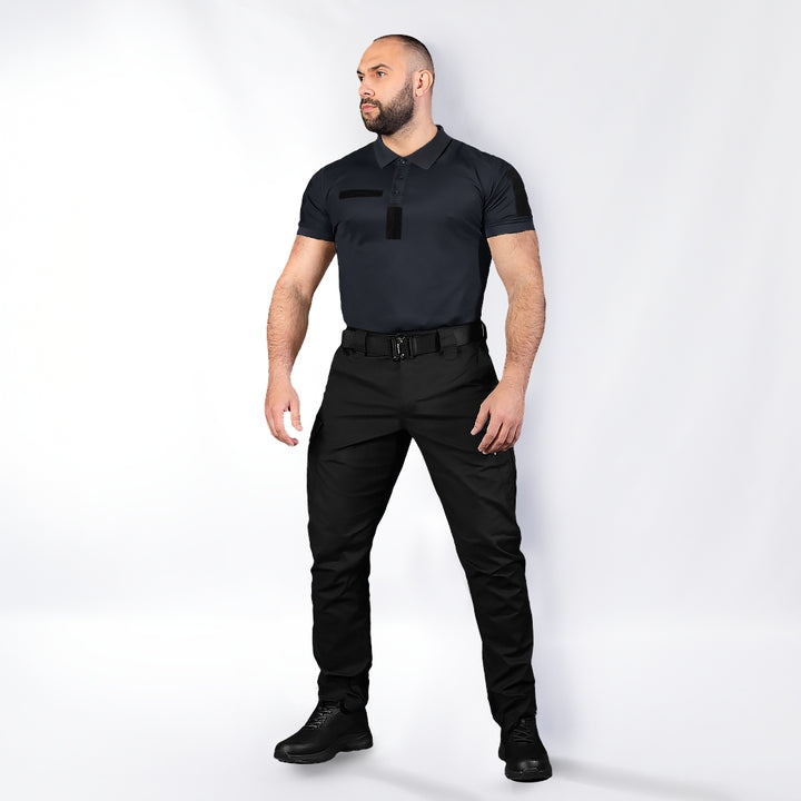 The tactical polo shirt is designed for law enforcement, emergency services, and security personnel, offering exceptional comfort and functionality. Made from breathable and durable CoolPass Pique Light fabric, it ensures moisture wicking and UV protection, making it ideal for active use.