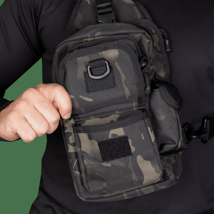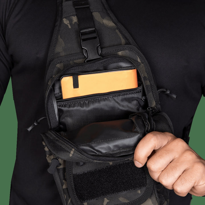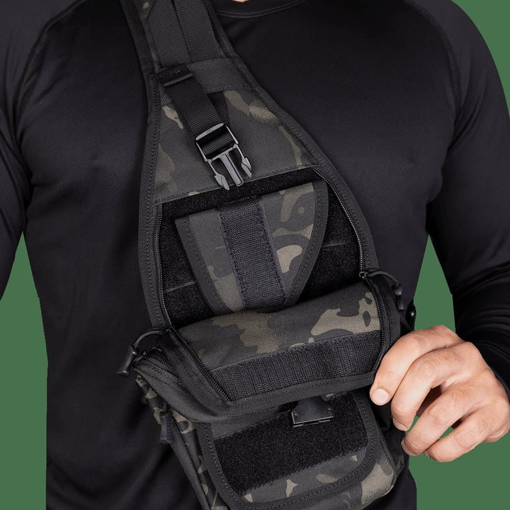 The Gunner Sling 2.0 Multicam Black (7113) by Camotec is a tactical shoulder bag designed for security and military personnel, but it is also perfect for everyday use, outdoor activities, and hiking. Its compact ergonomic design allows for easy access and comfort while on the move.