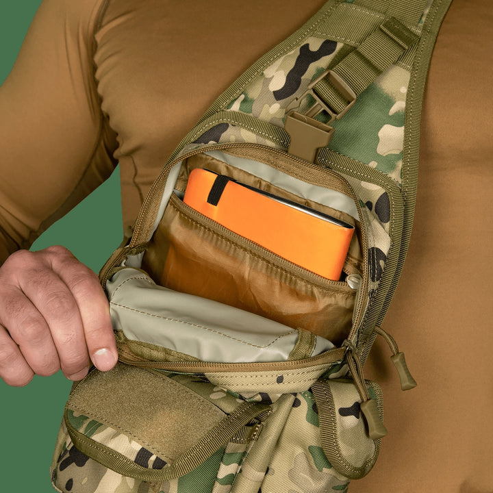 The Gunner Sling 2.0 Multicam (7114) is a tactical bag designed by Camotec, ideal for security and military personnel, yet versatile enough for everyday use, outdoor activities, and hiking. This bag combines compactness, ergonomics, and functionality necessary for daily tasks and professional needs.