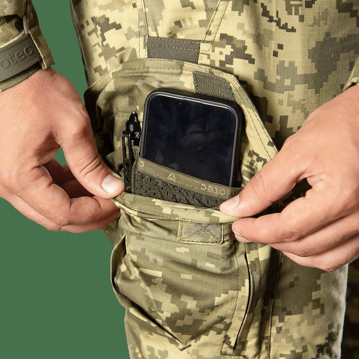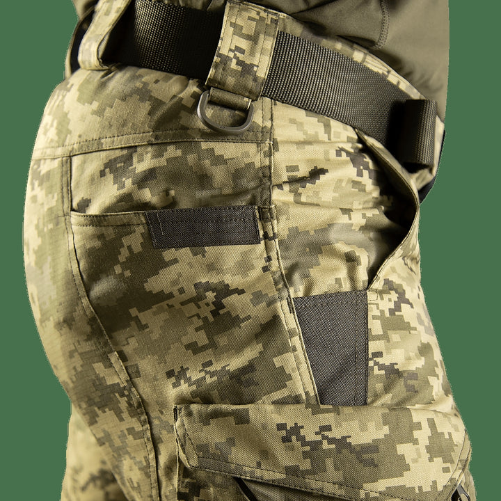 - Classic side pockets with reinforced areas for gear storage (knife, flashlight, etc.).