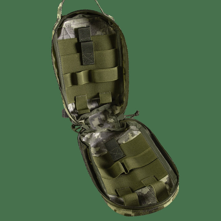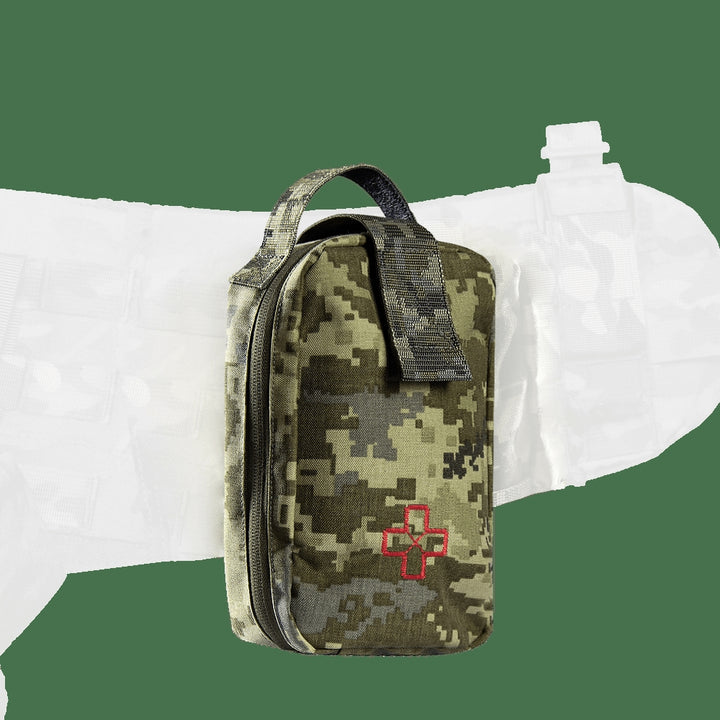 The Camotec IFAK Pouch (Model 8336) is a professional tactical first aid pouch designed for compact storage and quick access to medical supplies in the field. Its quick-release attachment mechanism allows for immediate detachment from combat gear in emergency situations.
