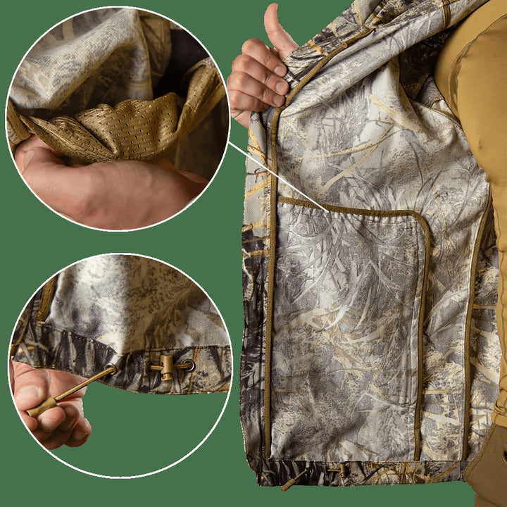 - Water-repellent finish to keep you dry and reduce noise for effective camouflage.
