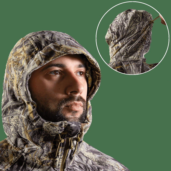- Ergonomically designed with a hood featuring adjustable drawstrings for a customizable fit.
