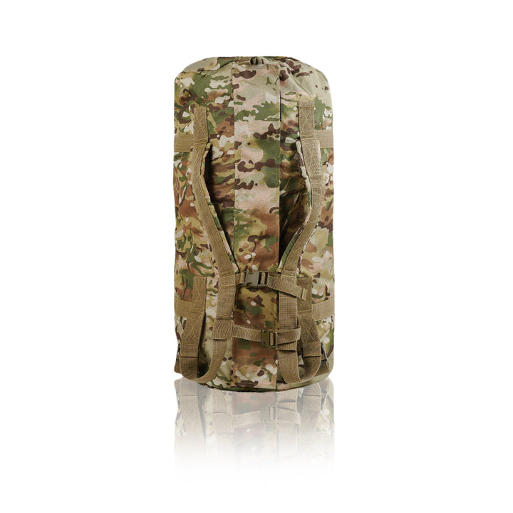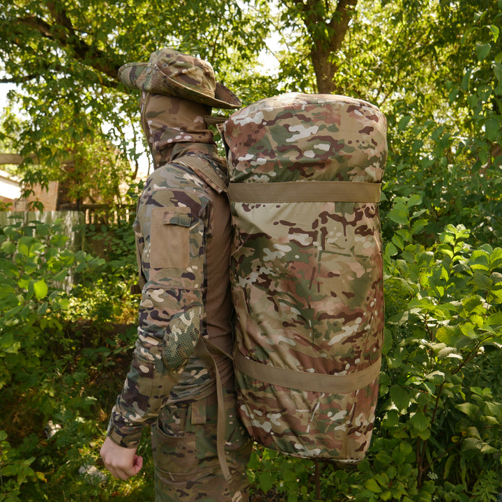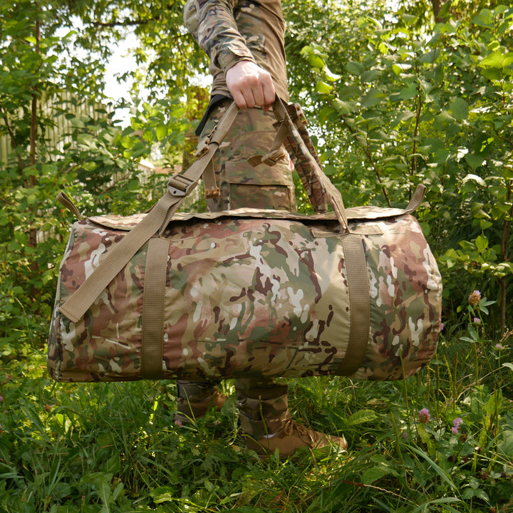 The Kiborg 80 Duffel Bag is designed for transporting personal items and gear, featuring a spacious 80-liter capacity and a durable, waterproof construction. Its versatile design allows for easy carrying as a backpack or by hand.