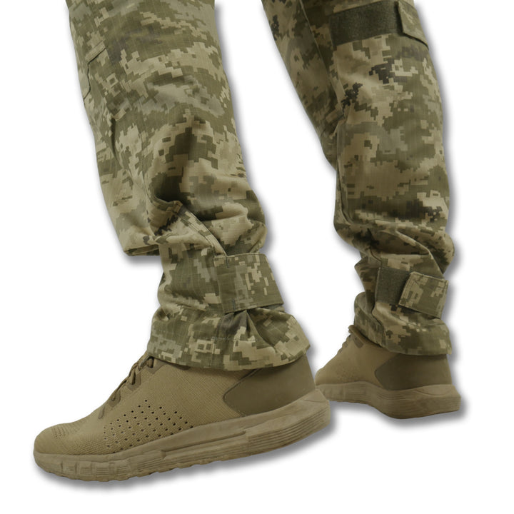 - Adjustable pant legs with Velcro above the knee and at the bottom