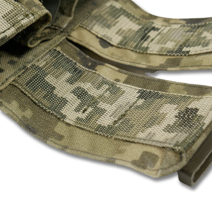 The Dual Grenade Pouch is expertly crafted from Cordura 1000D fabric, ensuring exceptional durability against abrasions and tears for intense use in any condition. Designed to securely hold two grenades, this pouch meets the technical requirements set by the Department of Defense.
