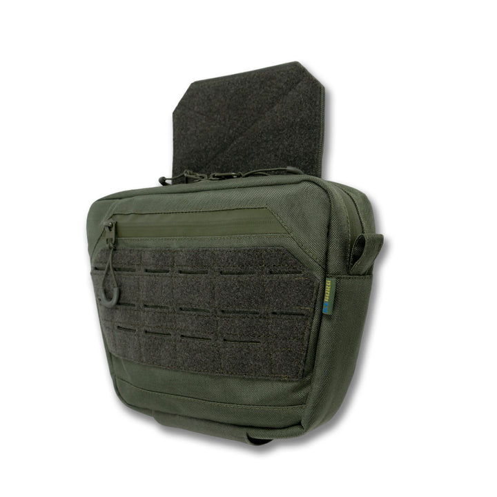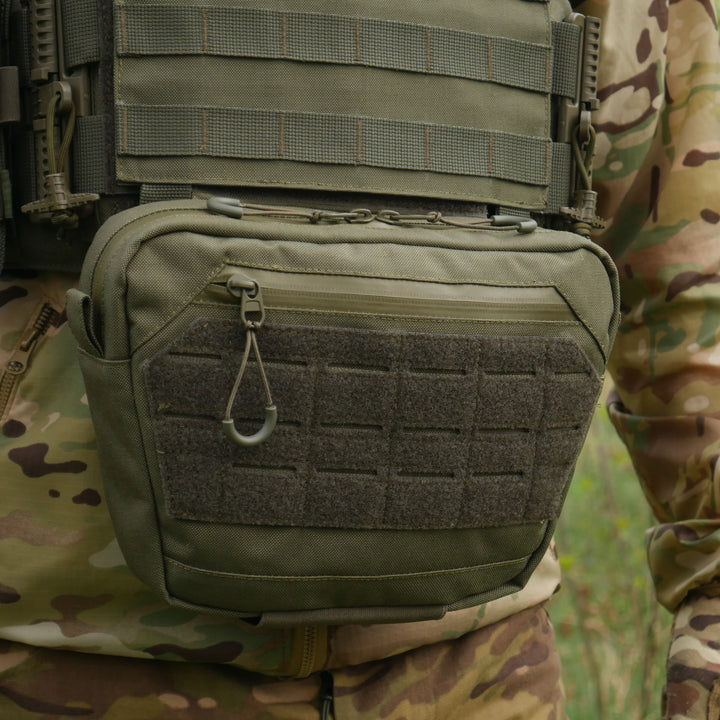 - Velcro attachment allows for secure mounting on plate carriers or vests with Velcro panels.