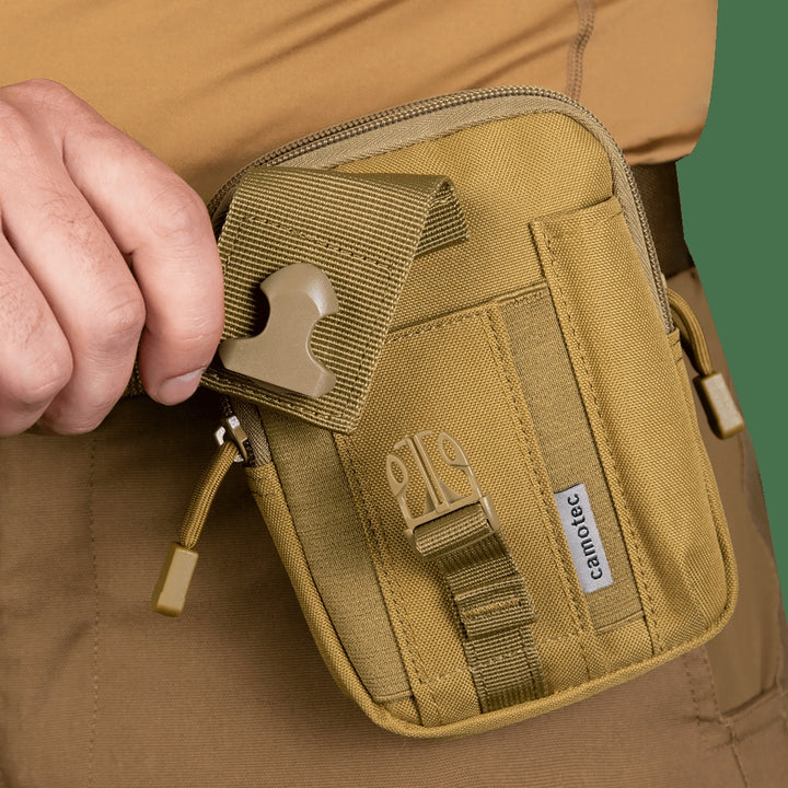 The Kid 3.0 Coyote Pouch (7110) by Camotec is a compact and reliable accessory designed for hiking, outdoor activities, and military use. It easily attaches to backpacks, belts, or any MOLLE strap system, ensuring quick access to your essentials.