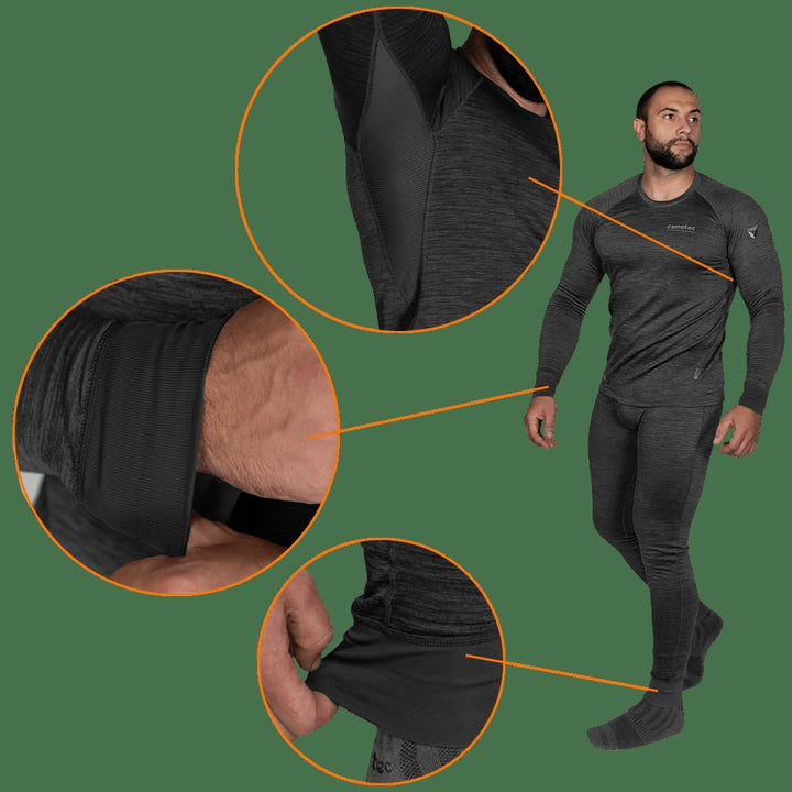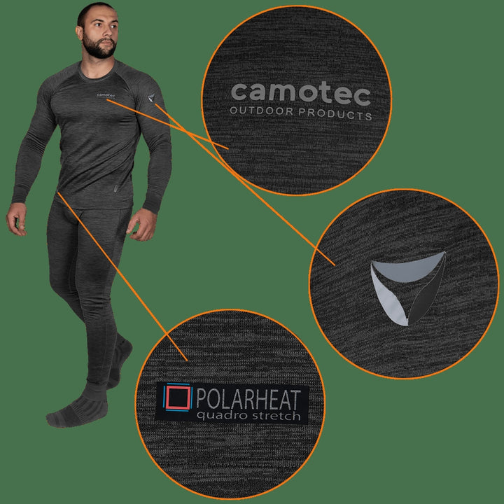 The LVL2 Polarheat QS Pro 2.0 Thermal Underwear in Gray Melange (7366) by Camotec is designed for those who value both functionality and aesthetics. This upgraded version features an ergonomic cut and elastic cuffs for optimal comfort and movement during active use.