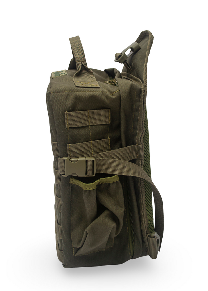 - PALS/MOLLE webbing on front, sides, and bottom for modular attachments