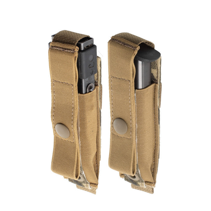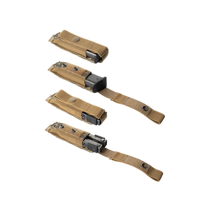 The Military Pistol Magazine Pouch is designed for the functional carrying of pistol magazines, folding knives, or multi-tools. This accessory features two buttons on the front and elastic bands on both sides to ensure a secure hold on your gear.