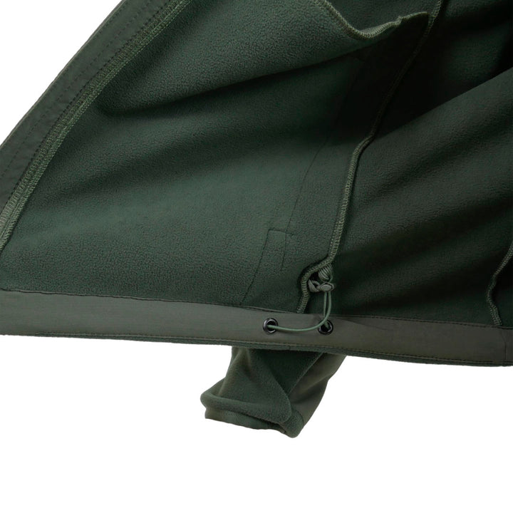 - Double collar design (fleece + fabric) for wind protection.