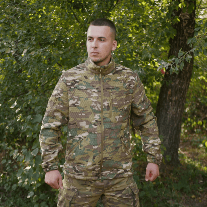 The Militex Windblock Tactical Fleece Jacket is a functional insulating layer designed for versatility, suitable for standalone wear or as a mid-layer under outer garments. Its advanced Press Sots material ensures a comfortable temperature by effectively retaining or dissipating heat based on conditions.