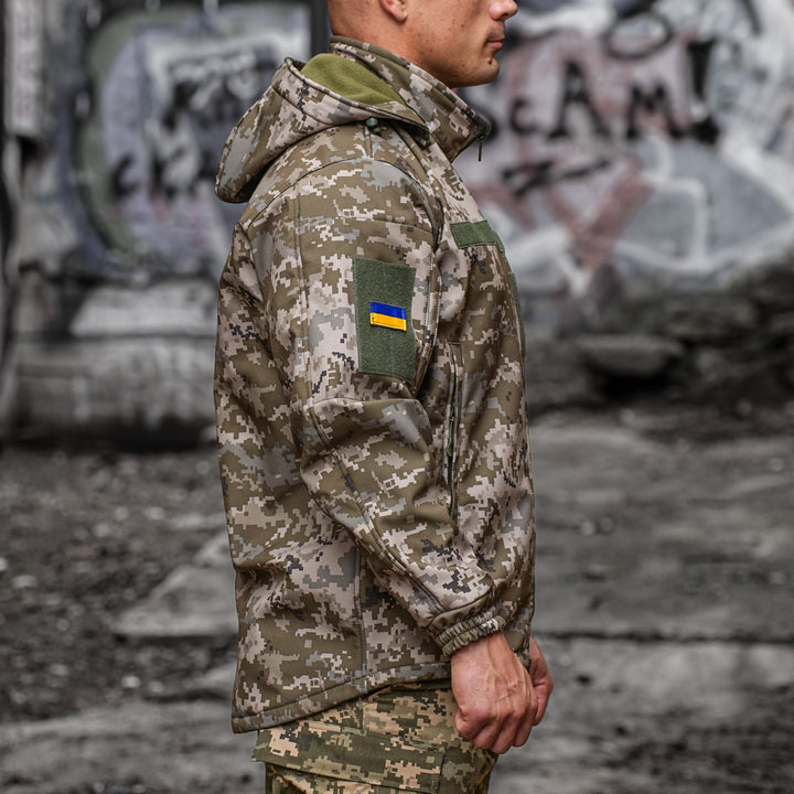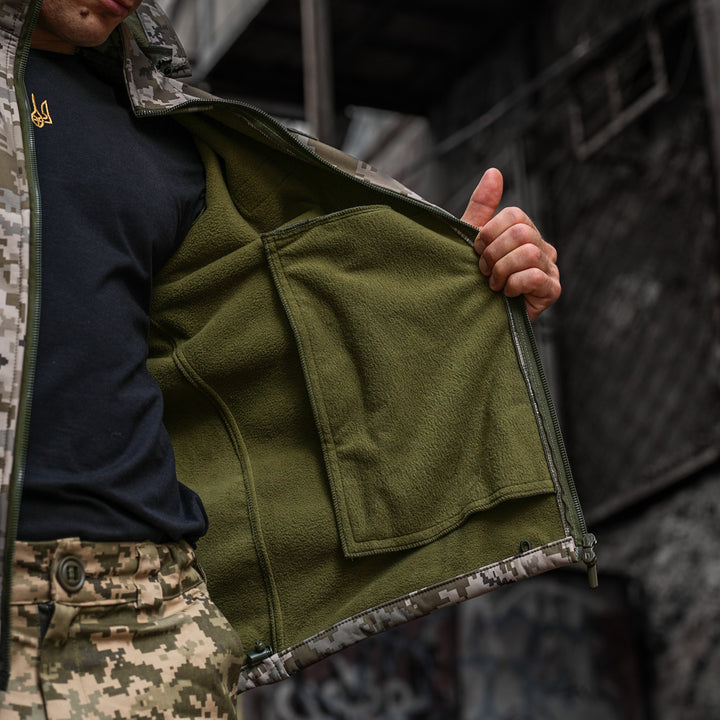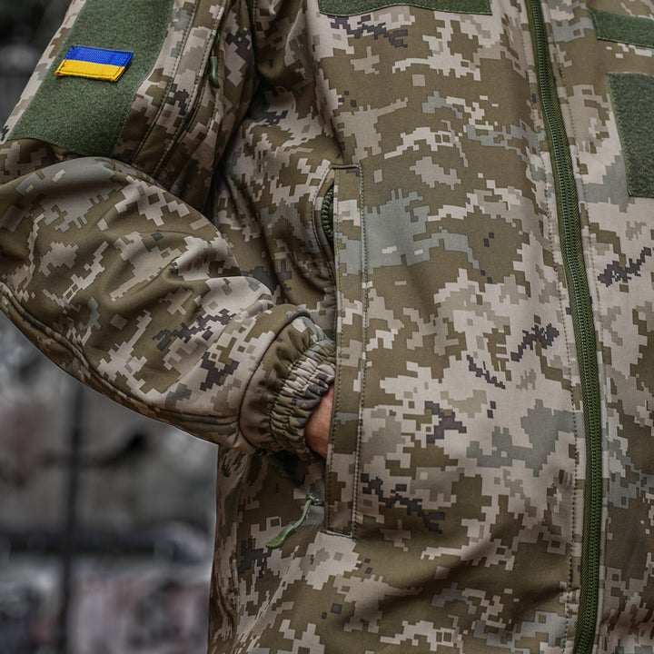 The Softshell Jacket in MM14 color is the perfect choice for professionals needing protection from wind, cold, and inclement weather. Made from water-repellent fabric, it replaces multiple layers of clothing, ensuring comfort in any conditions.