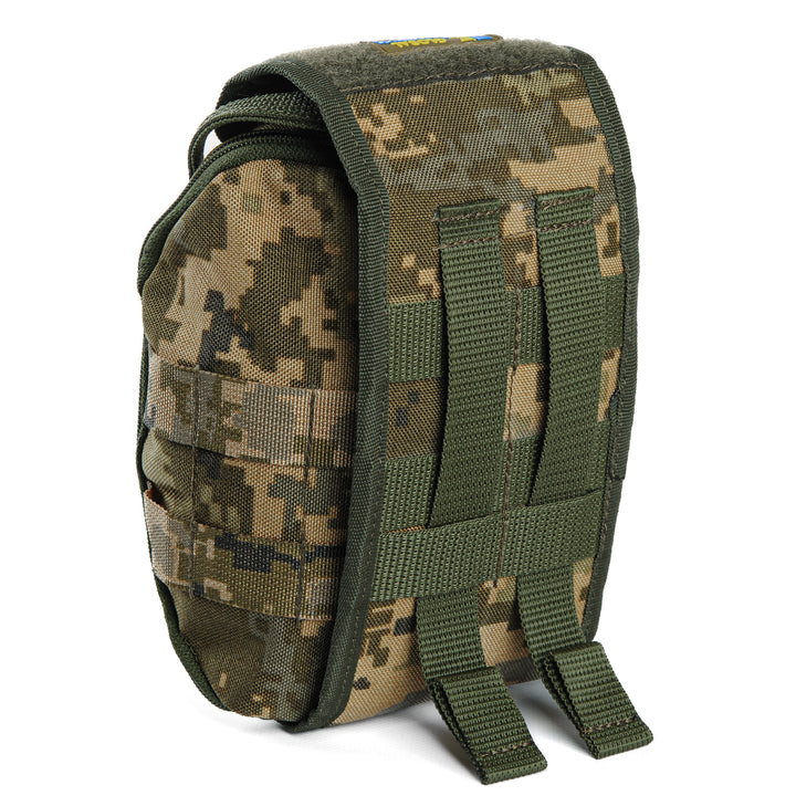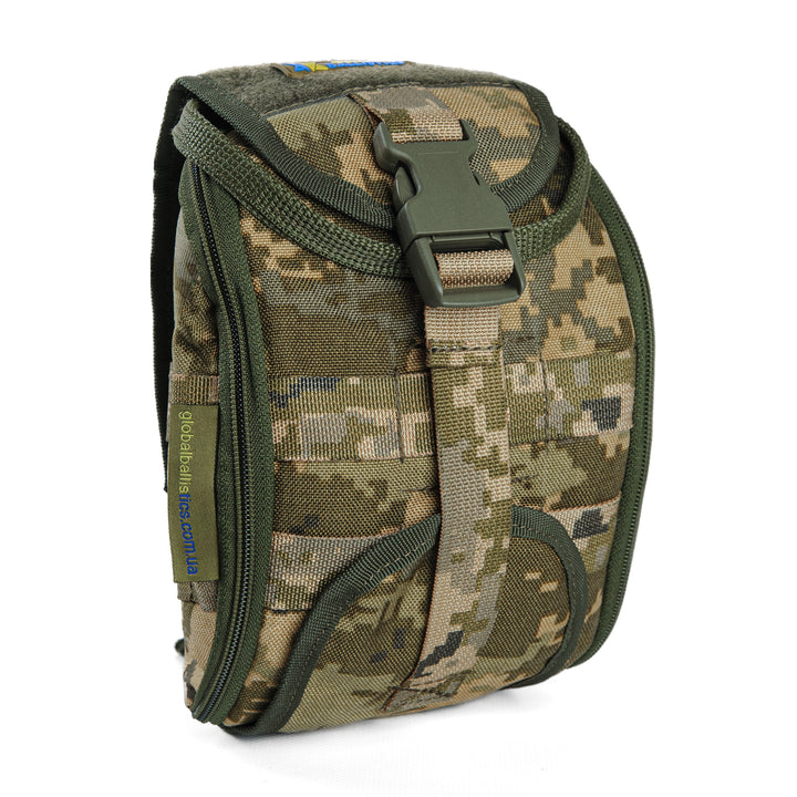 The Pixel MM14 First Aid Pouch from Global Ballistics is a modern and spacious organizer designed for the efficient and secure storage of medical supplies during service or tactical operations. Its optimized design allows for quick access to contents, potentially saving lives in critical situations.