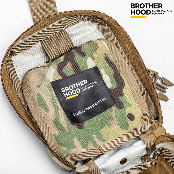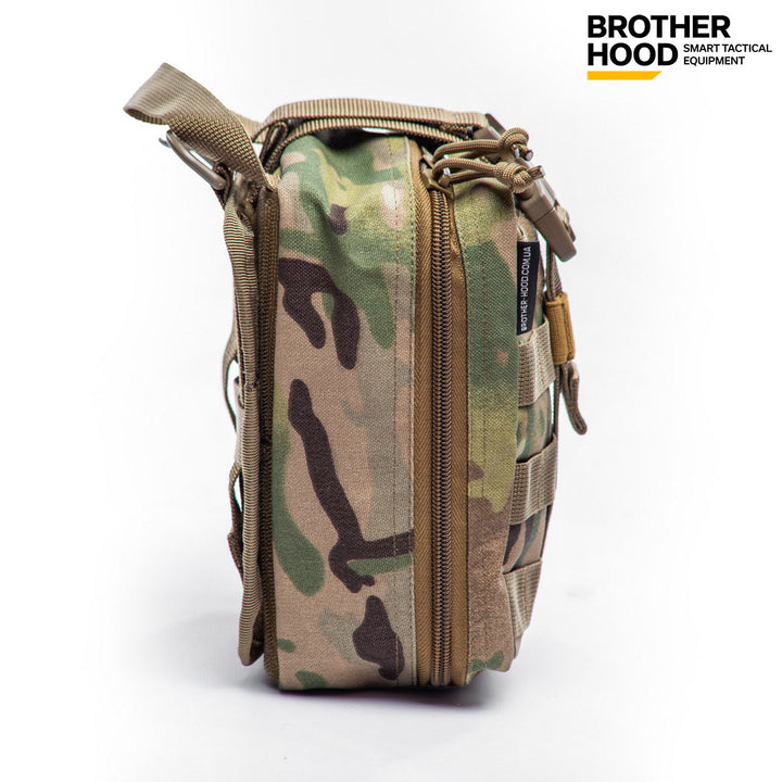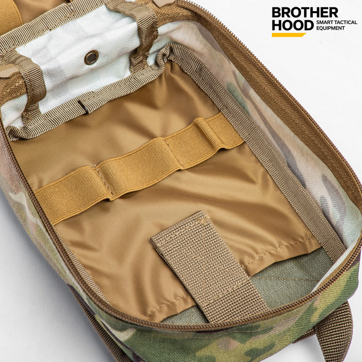 The Brother Hood Medical Pouch in Multicam-Coyote is an essential tactical accessory designed for professionals who prioritize safety and organization. This pouch ensures quick access to medical supplies while offering ample storage and versatile mounting options.