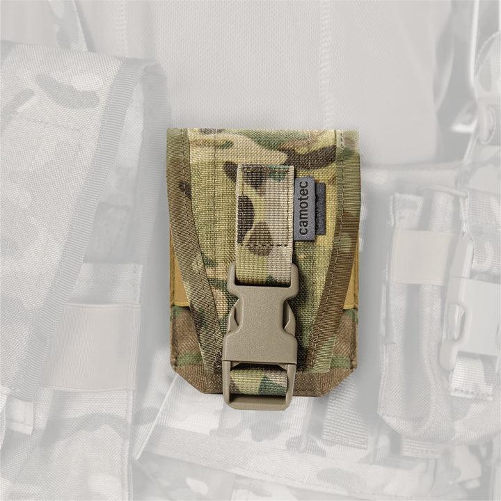 The Camotec Multicam .308 Magazine/Granade Pouch (Model 8534) is designed for secure storage and quick access to .308 rifle magazines or hand grenades. Built to withstand the demands of field operations, it is ideal for military personnel, security services, and outdoor enthusiasts.