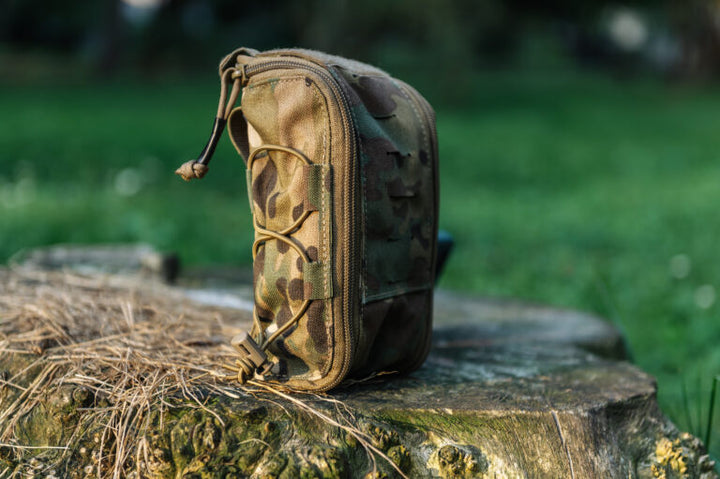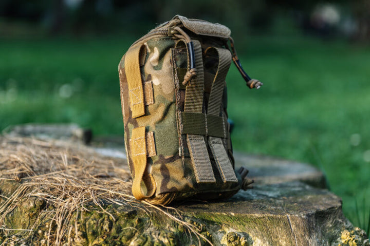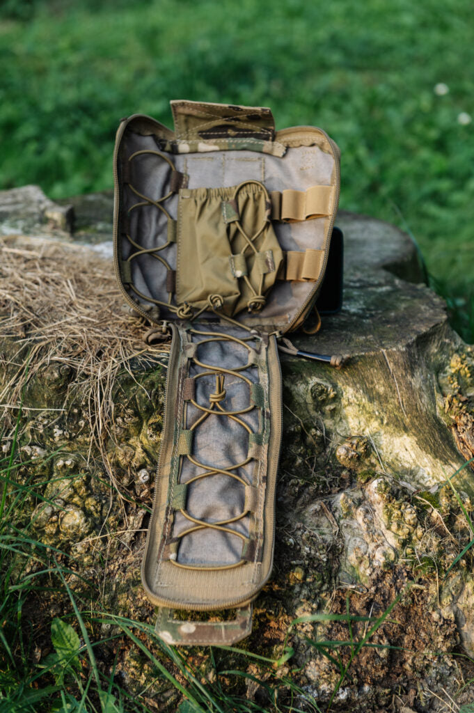 The medical pouch is designed for filling with medical supplies according to IFAK (Individual First Aid Kit) standards, serving as a basic individual medication kit. Its vertical design ensures it takes up minimal space on your gear while accommodating all necessary supplies and medications.