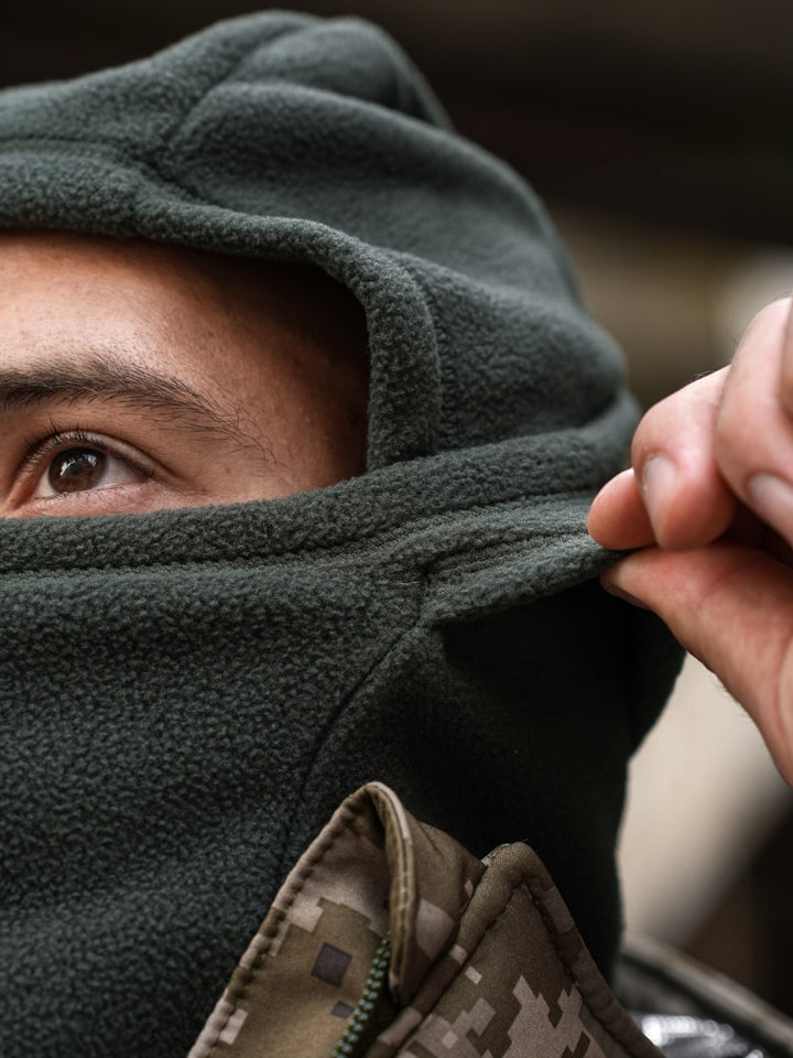 The Fleece Balaclava in olive color is the perfect blend of functionality and comfort, designed to protect you from the cold on harsh winter days. This accessory securely covers your head and neck, shielding them from wind, frost, and other adverse weather conditions.