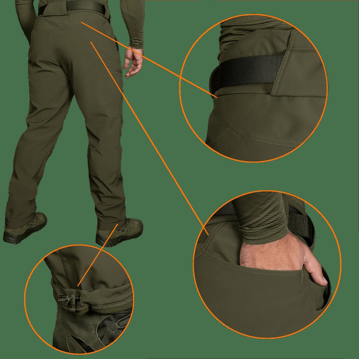 The SoftShell Mesh Pants in Olive (7307) by Camotec are a modern, functional choice designed for both service and everyday use. These pants combine innovative materials with thoughtful ergonomics to provide maximum comfort during extended wear.