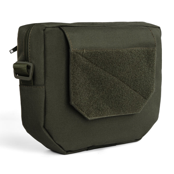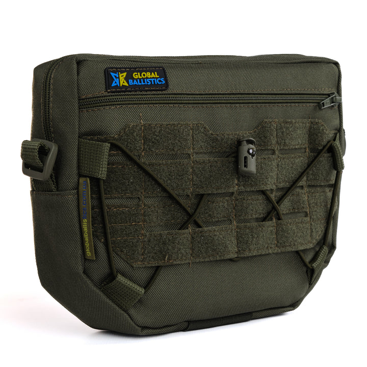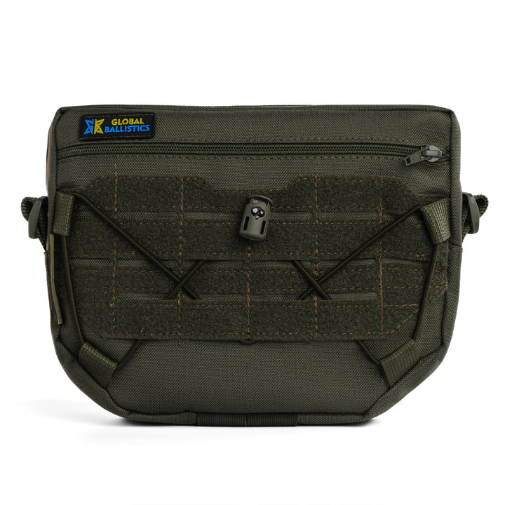 The Global Ballistics Tactical Pouch in olive is a practical and functional addition to any professional military gear setup. This compact and lightweight pouch significantly enhances your protection area while serving as an organizer for personal items, ensuring quick access to essential equipment.