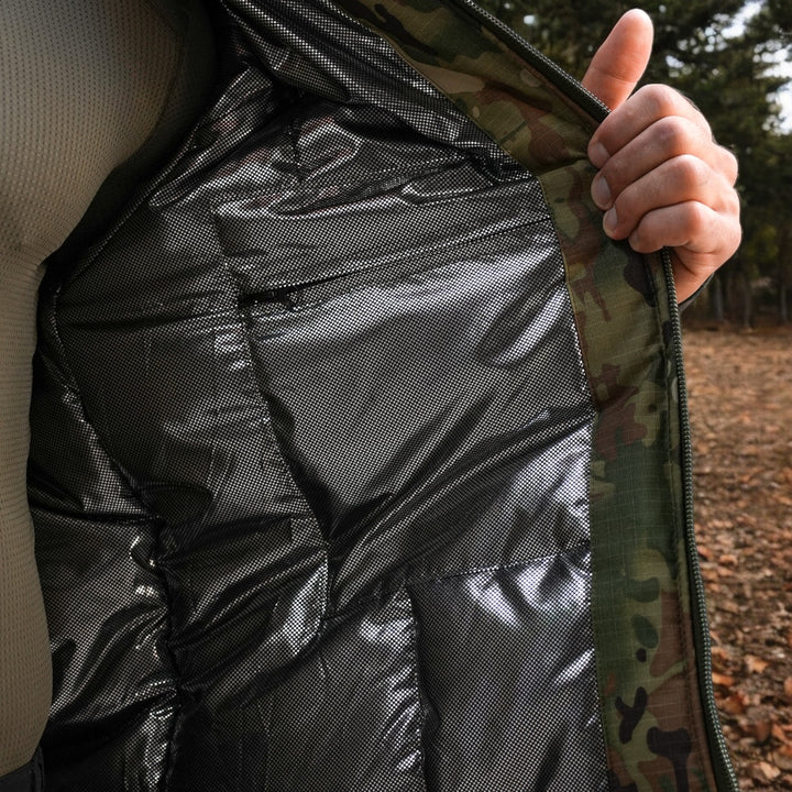 This winter jacket perfectly combines style, warmth, and functionality, making it suitable for the harshest weather conditions. Made from durable Rip Stop material, the jacket features an Omni-Heat Reflective lining that effectively retains your body heat with its reflective metallic layer.