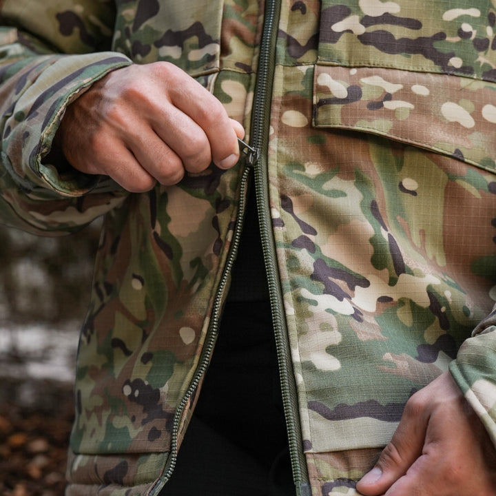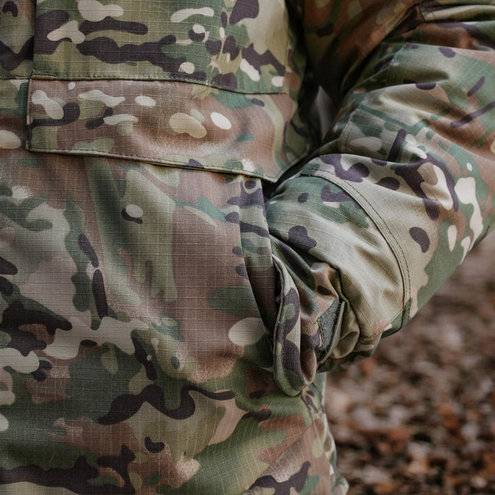 The jacket features functional pockets, including 2 chest pockets, 2 shoulder pockets, and 2 side pockets with protective flaps, all equipped with double zippers for ease of use. Additional features include Velcro on the sleeves and chest for attaching patches, making it ideal for outdoor enthusiasts and tactical wear. This jacket will be your reliable companion during the cold season, providing comfort and protection even in the most severe conditions.