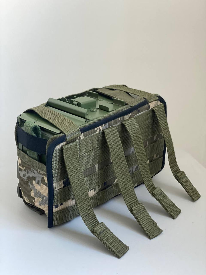 The DSG Pack Open Pouch for PKM Boxes is a practical and well-thought-out solution for modern military needs, designed for the **efficient carrying** and **quick access** of ammunition boxes during combat operations. This upgraded model features a horizontal design that enhances usability for machine gunners.