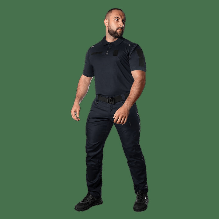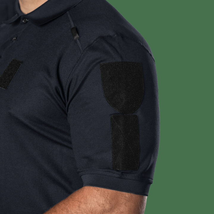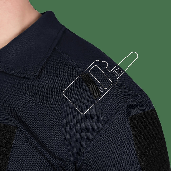The form-fitting polo is designed specifically for law enforcement, emergency services, and security personnel. Made from CoolPass Pique Light, this durable and elastic fabric features antibacterial properties, excellent breathability, and moisture-wicking capabilities.