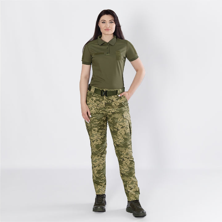 The women's polo shirt is designed specifically for women working in security and military structures, taking into account female anatomy for optimal fit and comfort.